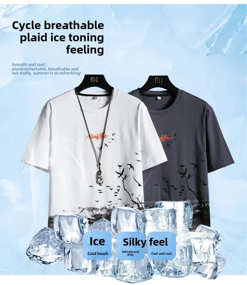 • Summer-ready Material : Crafted from ice silk, this t-shirt offers a cool and comfortable feel perfect for summer wear.