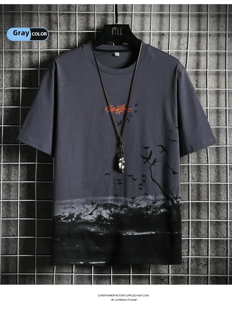Trendy 2023 Men's Half Sleeve T-Shirt Base Layer Top Summer Printed Ice Silk Short Sleeves Flower Patterned Men's Wear